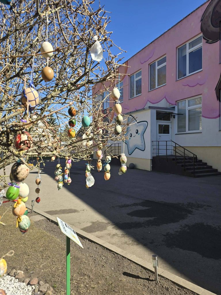 Radviliškio lopšelyje-darželyje „Žvaigždutė“ vyksta spalvinga ir prasminga tvarumo akcija „Papuoškime Velykų krūmą margučiais“. Ši iniciatyva kviečia visą darželio bendruomenę kartu išgyventi artėjančių Velykų sakralumą ir kūrybiškai prisidėti prie šventinės nuotaikos kūrimo. Pagrindinis akcijos tikslas – ne tik papuošti aplinką, bet ir skatinti bendruomeniškumą bei pagarbą lietuvių liaudies tradicijoms. Akcijos metu didelis dėmesys skiriamas kūrybiškumui – bendruomenės nariai skatinami išradingai marginti kiaušinius, atskleidžiant jų estetinį grožį. Vaikai ir suaugusieji mokėsi pastebėti lietuvių liaudies margučių simbolių bei spalvų įvairovę. Kiekviena darželio grupė iš dekoruotų išpūstų kiaušinių kūrė girliandas, kuriomis vėliau buvo puošiamas bendras „Velykų krūmas“. Šią gražią iniciatyvą kuruoja vyresniosios mokytojos Nomeda Gulbinienė, Natalija Červonikova bei mokinio padėjėja Lina Našlėnienė. Akcijos organizatorės džiaugiasi, kad bendras darbas ir kūrybinis procesas leidžia kiekvienam pasijusti svarbia didelės ir darnios „Žvaigždutės“ šeimos dalimi. Dėkojame visiems dalyvaujantiems už pasidalintą šilumą ir kuriamą Velykinę magiją „Žvaigždutės“ darželio kieme!