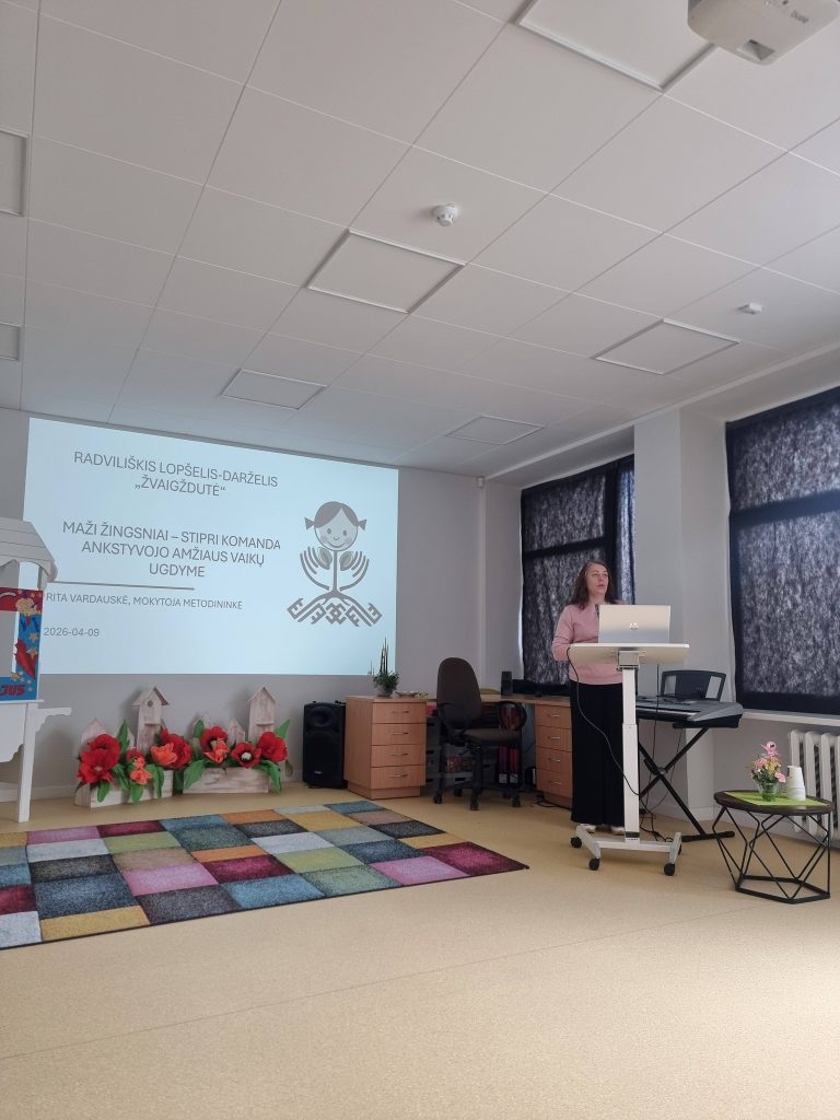 2026 m. balandžio 9 d. Radviliškio lopšelio-darželio „Žvaigždutė“ bendruomenė gyveno profesinio augimo ritmu – skatinant lopšelio-darželio mokytojų profesinį augimą profesinėje srityje, ikimokyklinio ugdymo mokytoja metodininkė Rita Vardauskė ir vyresnioji mokytoja Evelina Pranaitienė aktyviai dalyvavo Joniškio vaikų lopšelio-darželio „Saulutė“ organizuotoje respublikinėje konferencijoje „Superherojai be apsiaustų: lyderystė, kuri kuria vaikų pasaulį“. Skatinant pedagogų pasidalytąją lyderystę kuriant įgalinančią įstaigos kultūrą, kurioje kiekvienas bendruomenės narys tampa lyderiu, sudarytos sąlygos „Žvaigždutės“ darželio atstovėms ne tik semtis patirties, bet ir pačioms dalintis savo inovacijomis. Ypač daug dėmesio skirta pasidalytosios lyderystės raiškai, įgyvendinat įstaigoje tvarumo idėjas. Mokytojos skaitė pranešimus „Mokytojo lyderystė darželyje: kaip nebijoti naujovių?“ bei „Maži žingsneliai – stipri komanda: partnerystė ankstyvojo amžiaus vaikų ugdyme“, kurie sulaukė ypač didelio respublikos kolegų susidomėjimo. Pedagogės dalijosi gerąja patirtimi, akcentuodamos neformalią įtaką, asmeninę atsakomybę, vadovų pagalbą, paskatinimą bei visada geranorišką palaikymą ir tvirtą partnerystę su ugdytinių šeimomis. „Superherojaus apsiaustas nebūtinas, kad darytume stebuklus kasdieniame darbe. Svarbiausia – autentiškas pavyzdys ir drąsa auginti mažuosius lyderius.“ – tokia nuotaika po renginio dalijosi mokytojos. Džiaugiamės ir didžiuojamės Evelinos ir Ritos kompetencija bei iniciatyvumu garsinant Radviliškio lopšelio-darželio „Žvaigždutė“ vardą respublikiniu mastu!